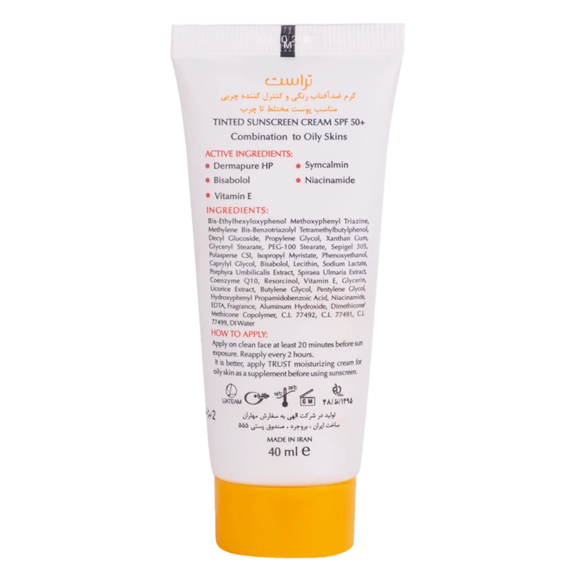 کرمهای ضدآفتاب رنگی تراست با SPF50+ از مرغوبترین و جدیدترین مواد اولیه موثره دارای حداکثر حفاظت دربرابر پرتوهای مضر خورشید ساخته شدهاند؛ این کرم با وجود بهرهمندی از بافتی سبک، دربرابر آسیبهای وارده توسط نور خورشید به خوبی از پوست محافظت و با مهار رادیکالهای آزاد از تخریب سلولهای پوستی جلوگیری میکند. همچنین با مصرف این محصول، بدون بسته شدن منافذ پوستی و ایجاد خلل در تنفس سلولهای پوستی، ضمن کنترل چربی، پوستتان آبرسانی میشود.