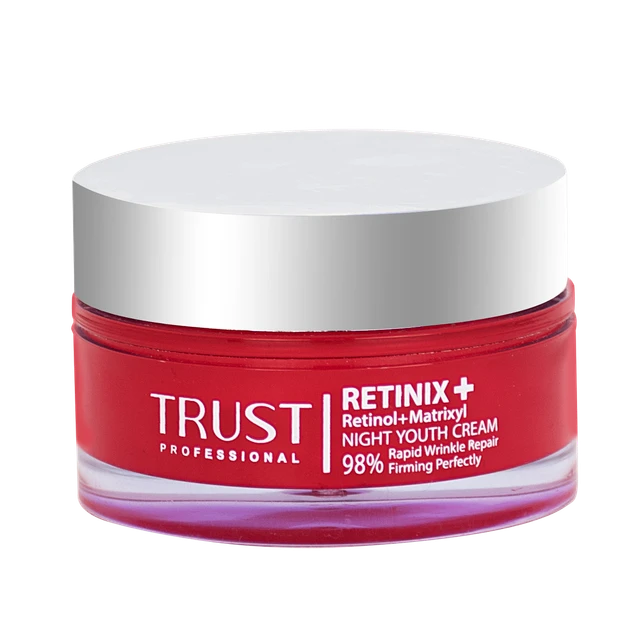 و در نهایت، آملیوکس موجود در کرم جوانساز رتینول تراست، با جلوگیری از تأثیر پرتوهای مضر UV و با خواص آنتیاکسیدانی ویژهای که دارد، چینوچروکهای پوستی را بهبود بخشیده و از شکستن و تغییر فرو پروتئین کلاژن و نیز پیری پوست جلوگیری میکند. در کنار مواد مؤثره مطرحشده، این محصول تراست، با عصاره دانه لوپینوس آلبوس، به حفظ استحکام و افزایش خاصیت کشسانی پوست، با لایزین آسپارتات، به بهبود سوختوساز سلولهای پوستی و تکثیر آنها، با روغن آووکادو، به حفظ استحکام و پایداری پوست و با هلیانتوس آنوس سید اویل، به بهبود آبرسانی و جلوگیری از پیری پوست، کمک میکند.