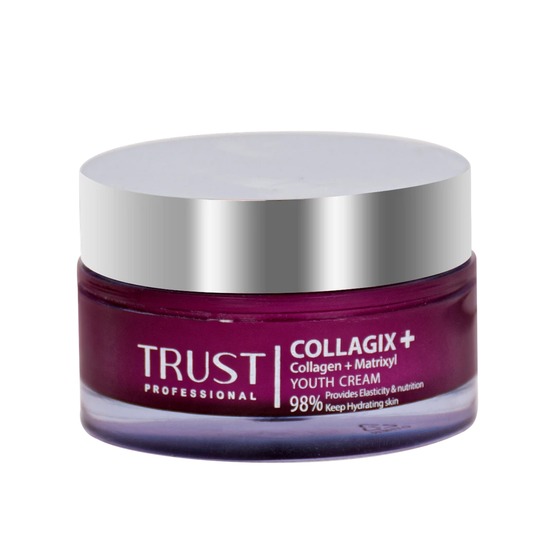 و در نهایت، پلی پپتاید آرژینین و لایزین موجود در کرم جوانساز کلاژن تراست، از ایجاد چینوچروک در پوست جلوگیری کرده و به حفظ شادابی و سلامت پوست کمک میکند. در کنار مواد مؤثره مطرحشده، این محصول تراست، با عصاره دانه لوپینوس آلبوس، به حفظ استحکام و افزایش خاصیت کشسانی پوست، با آسپارلین، به بهبود سوختوساز سلولهای پوستی و تکثیر آنها، با روغن آووکادو، به حفظ استحکام و پایداری پوست و با هلیانتوس آنوس سید اویل، به بهبود آبرسانی و جلوگیری از پیری پوست، کمک میکند.